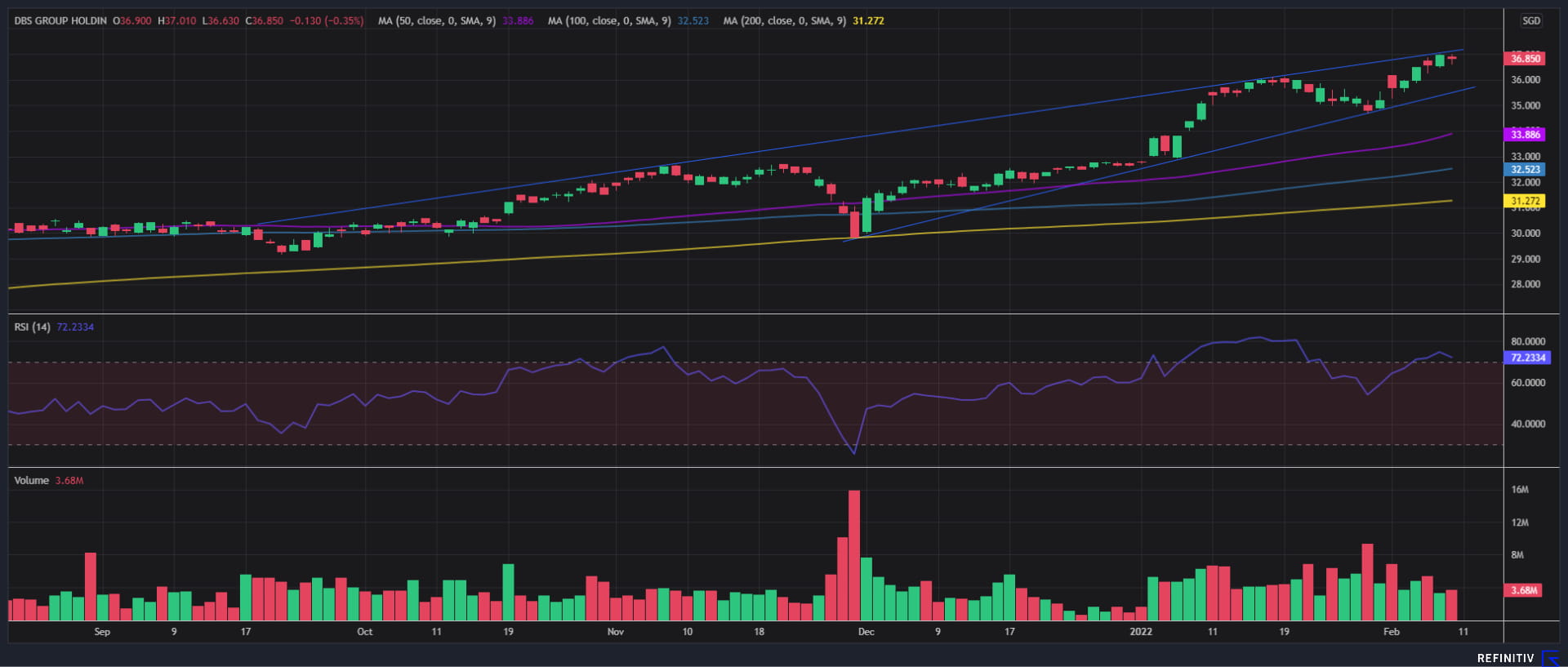 星展银行的股价在过去12个月里上涨逾40%,而且新年伊始又启动加速冲高,该股也因此于本周创下37新元历史新高。