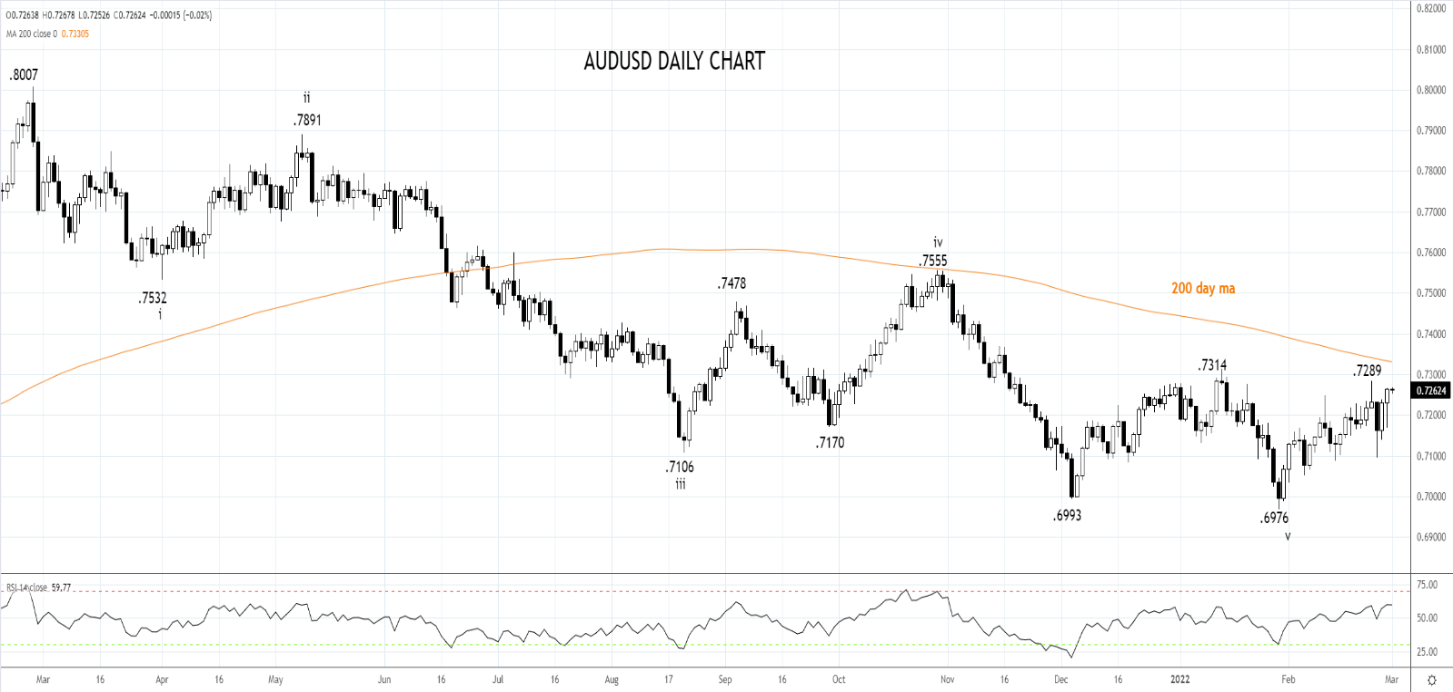 在上述利好因素的带动下,澳元/美元自0.7100支撑位强劲反弹,即将测试0.7290(上周高点)和200天均线0.7330间顽固阻力区间。