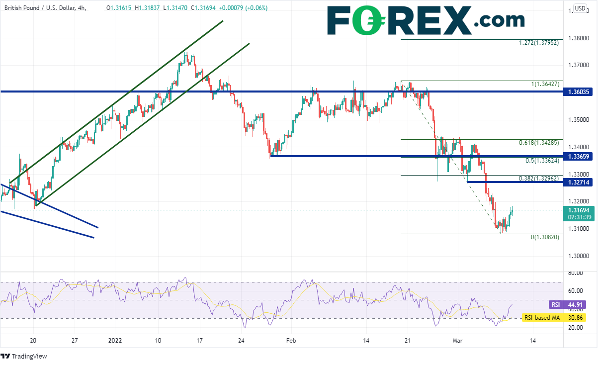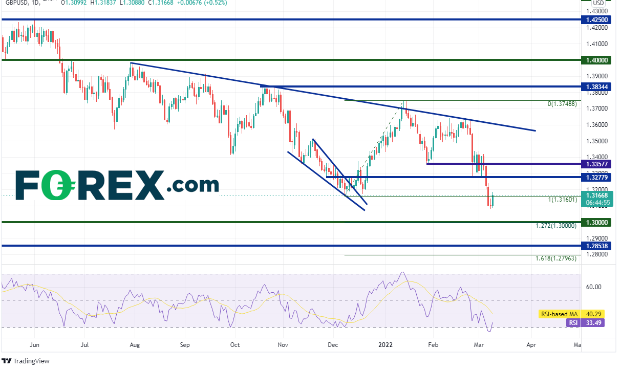 俄罗斯与乌克兰之间可以达成停火协议的期待与希冀推低美元指数、推高英镑/美元。但如果出现负面消息,可能导致这两种交易产品的走势逆转。请注意,FOMC与英国央行将在下周召开货币政策会议。所以,英镑/美元下周的焦点可能从俄乌冲突切换到央行会议的结果。
