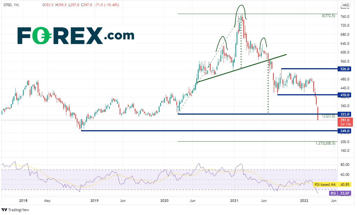 负面消息作用下腾讯股价到达头肩顶目标价位- 嘉盛官网