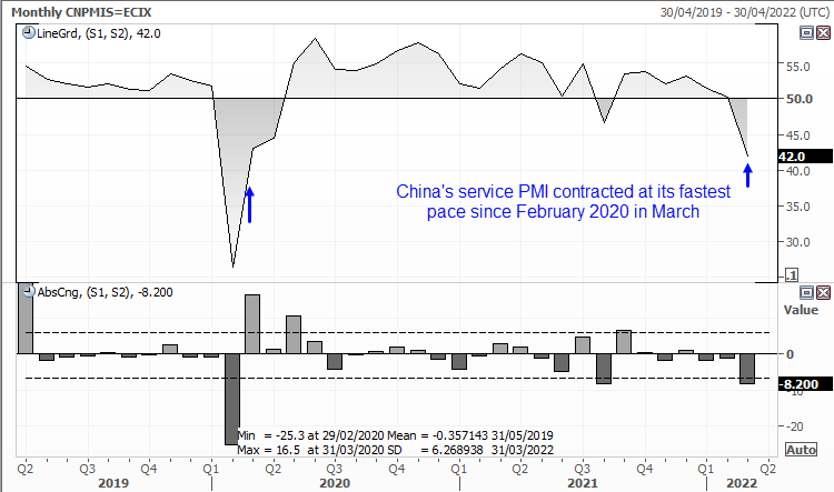 最近新冠病例数增加以及为了遏制疫情而随之展开的限制措施,拖累中国服务业活动。中国服务业PMI50.2下跌至42,是2020年一季度疫情最严重时期以来最高收缩速度,8.2点的跌幅也是20218月以来最大月度跌幅。