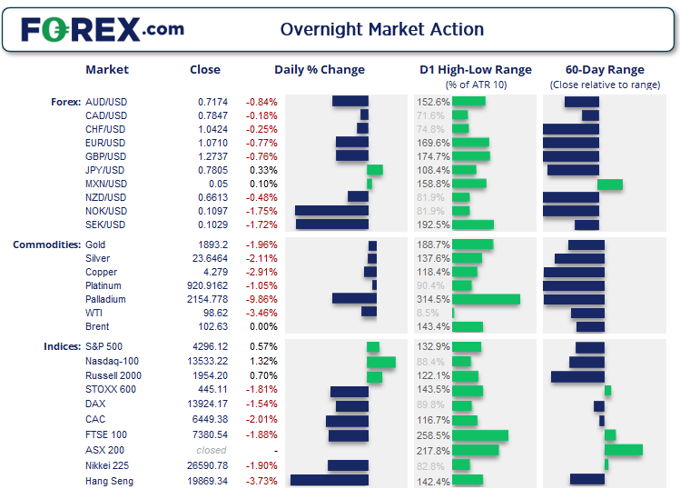 澳大利亚与新西兰市场周一因澳新军团日休市,今天重新开放交易,部分投资者也要消化一些消息。封锁管控与新冠病例数增加引发中国经济增长放慢的担心,继而放大为对全球成长放慢的担心,也催生通胀变得“根深蒂固”的关切。