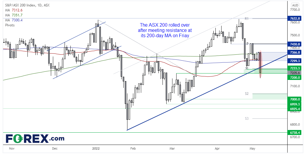 ASX 200指数在200天均线遇阻并调头向下- 嘉盛官网