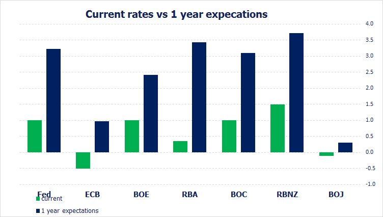 美联储等央行的1年期利率预期上升- 嘉盛官网