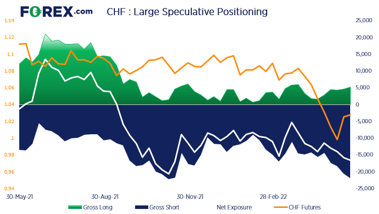 截至上周二,瑞郎期货净空头敞口处在逾六个月来最看跌水平。总空头触及17周高点,不过近几周总多头规模持续攀升。我们认为原因可能在瑞士央行。瑞士央行已向市场发出有能力(在合理范围内)应对本币走强的信号,并暗示,如果通胀继续超过预期,或终将上调-0.75%的政策利率下限。瑞士央行周四鹰派言论导致美元/瑞郎急挫,创近六年来最大单日跌幅。所以,瑞郎空头明显已于低点平仓出场,未来几周,随着瑞士央行最终被迫加息,这一走势很可能继续。