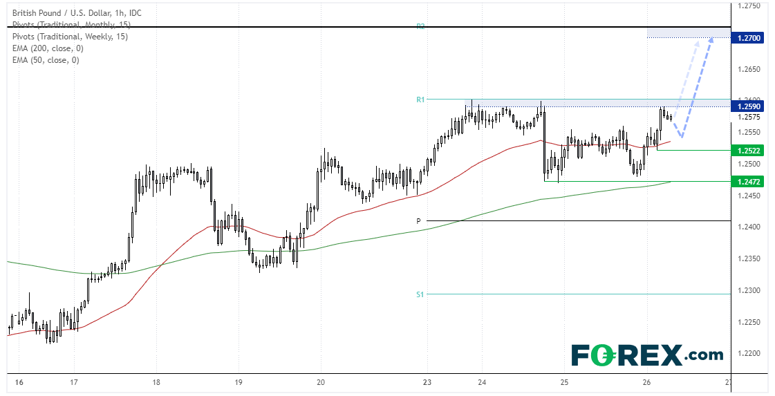 我们仍于1.2522低点上方保持看涨,并等待汇价攻向1.2700阻力区。但还有一个小型牛旗正在成形,因此,汇价可能会在欧盘和美盘直接上破,若实现,我们将在旗形低点上方看涨。