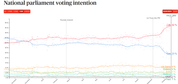 糟糕至极的个人和政党民调数据是迫使特拉斯放弃并逆转激进减税政策(保留最高45%的个人所得税率,提高公司税率,缩短能源账单上限的覆盖周期)并公开致歉的主要原因,也可能是其未来下台的导火线。