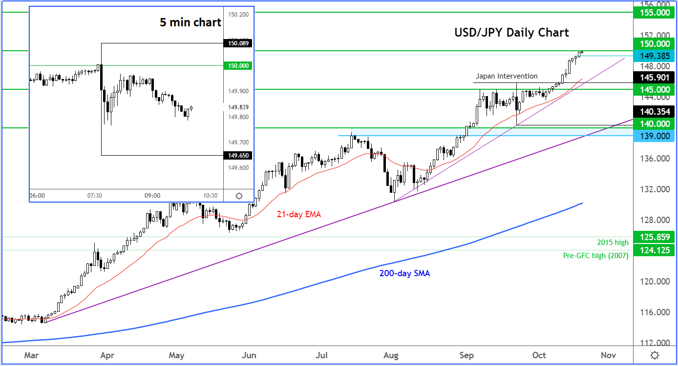 正如我的亚洲分析师同事Matt Simpson所指出的,美元/日元几乎不可避免地会突破[150.00],但问题是突破后会发生什么。您瞧,它的确突破了150关口。现在是否会像Simpson所想的那样,招致财政部或日本央行官员更严厉的措辞