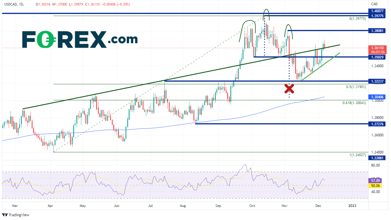 尽管美元/加元在过去几周一直走高,但该货币对在加拿大央行的决定后持续走低。宣布加息50个基点后,美元/加元就从1.3646跌至1.3588,尽管声明的基调略显鸽派。这可能归咎为“买入谣言,卖出事实”的规律。