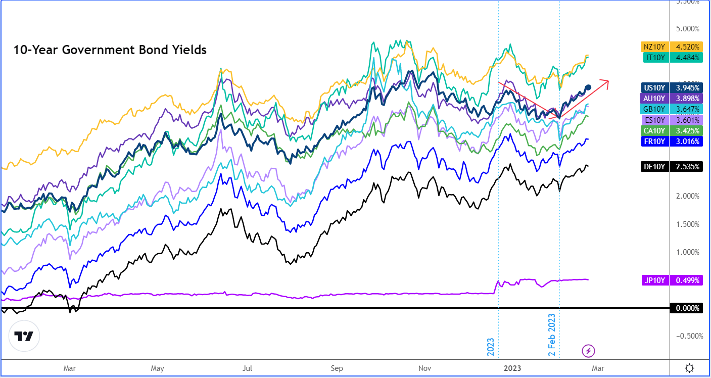 事实上,不仅仅是美国的收益率在上升。如果看一下全球基准10年期国债收益率,你会发现它们自本月初以来一直在上升: