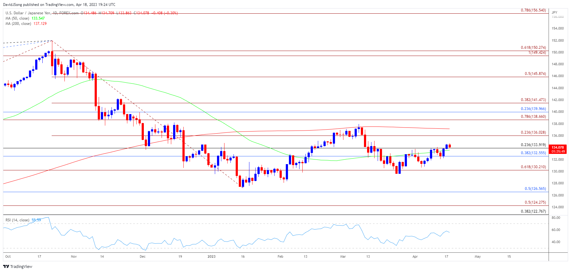 综上所述,美元/日元可能会沿着50日均线(133.55)上行,而汇率可能会继续收复3月高点(137.91)以来的失地,因为它形成了一系列更高的高点和低点,并且预计美联储将加息25个基点。