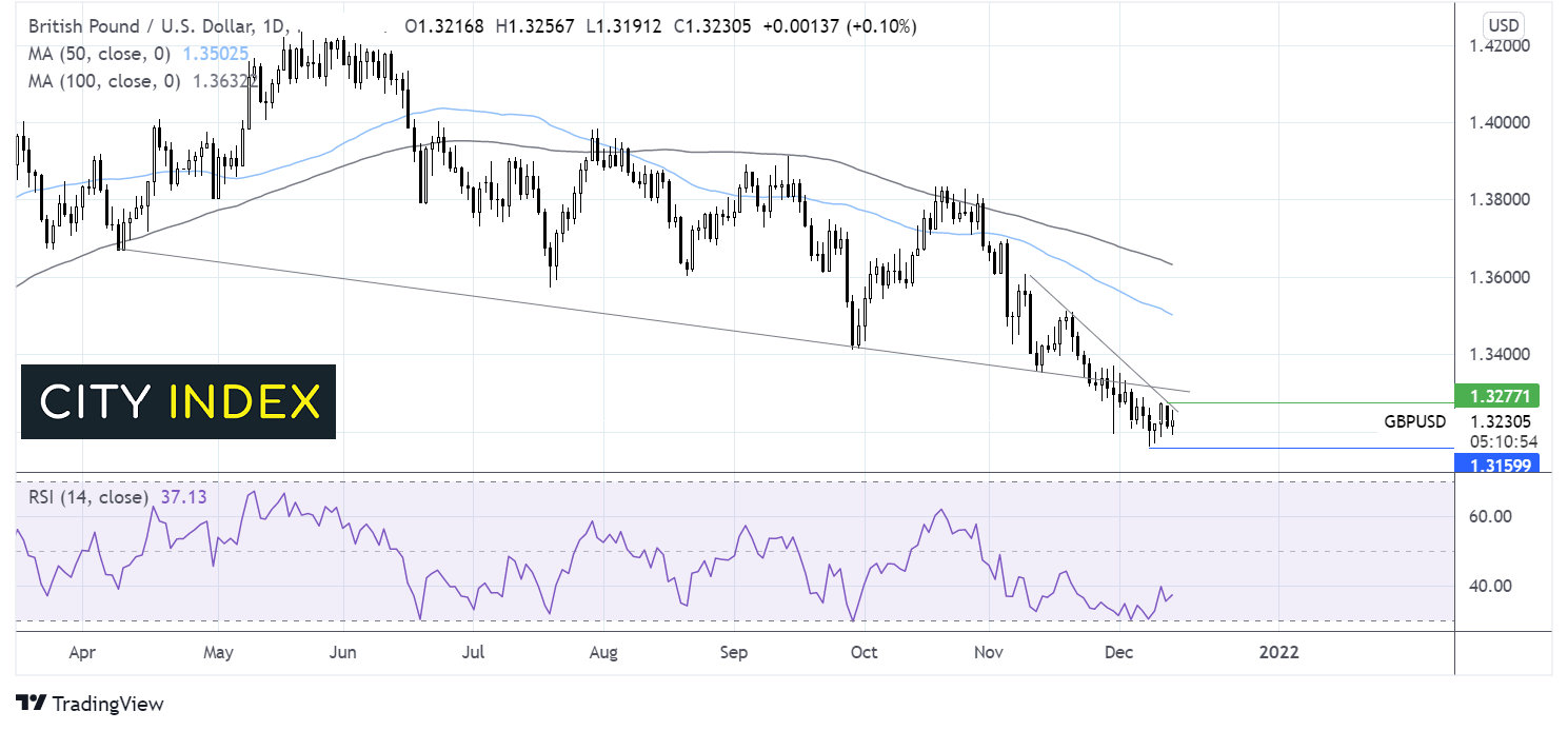英镑/美元月初跌破下行趋势线支撑位,并于1.3160构筑今年迄今低点。